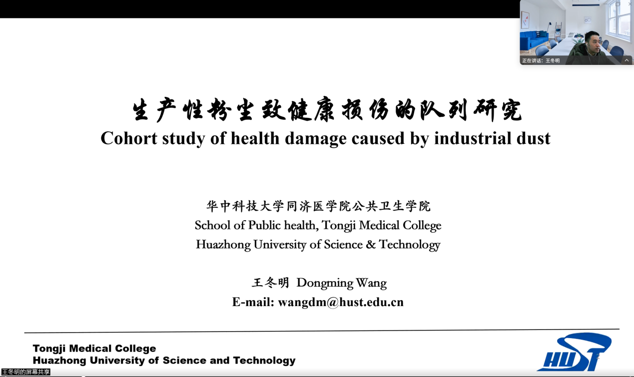 系列讲座首场,华中科技大学同济医学院必赢3003no1线路检测中心王冬明教授以 “生产性粉尘致健康损伤的队列研究”为题,系统分享了其基于全球最大、随访最长的矽肺工人队列所取得的系列成果。研究揭示了低水平矽尘暴露下的健康风险,对现行职业健康标准提出了重要挑战,为尘肺病的精准预防提供了关键科学证据。